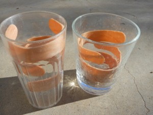 This idea is a really fun way to add math to an arts & crafts project. AND, it's really simple to do, which is even better! The project is making math bracelets and all you need are craft sticks (those wooden popsicle stick things), a cup or glass with a diameter close to your wrist's, and some markers. First, plop the sticks into a pot of boiling water (this is to soften them up so they'll bend). Give them about 15 or 20 minutes and (carefully) get them out (use tongs!) then put them into the cup or glass to make your bangle bracelet to be! Give them some time (24 hrs is good) to dry (and cool), then take them out and decorate away! I love these as a culmination to a particular topic -- my favorite is after factoring lessons in algebra, because students can make "study bracelets" with the factored forms for the common binomial and trinomial equations. They are good for geometry too though (types of polygons look great on these!). Make some and let me know how they turn out!