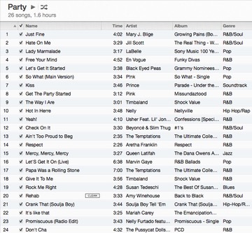 Here's a screen shot of one of the Party Playlist's I've used in classes gone by: