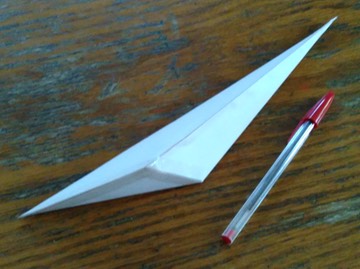 I finally got around to folding one of the paper templates described in my previous blog post "Templates for Asymmetric Integer Tetrahedra". I printed it on an A4 sheet of paper and folded it into the solid shape shown. Folding the creases in the opposite direction will make the mirror image shape. The edge lengths are relative. It could be drawn to 1 cm scale if desired, and would fit on one page.